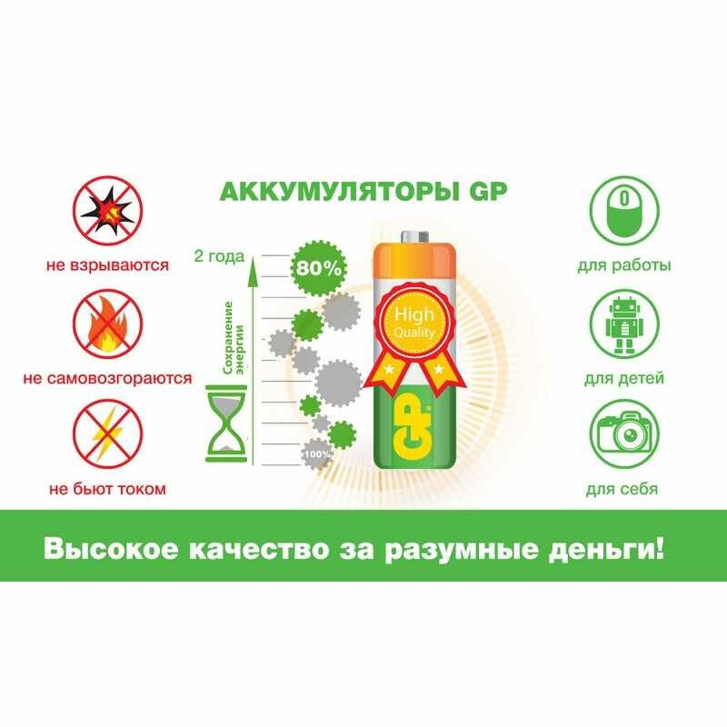 Перезаряжаемые аккумуляторы GP используются повсюду и применимы в широком спектре устройств. Все типы таких аккумуляторов сохраняют энергию длительное время и могут быть перезаряжены до 500 раз.