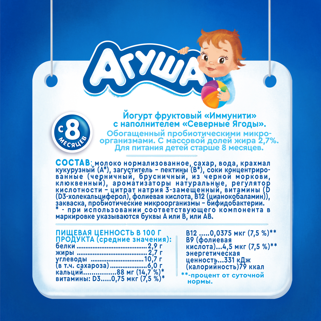 Йогурт питьевой Агуша Иммунити северные ягоды 2.7% Йогурт Агуша питьевой северные ягоды с 8 месяцев 2.7% 180 г