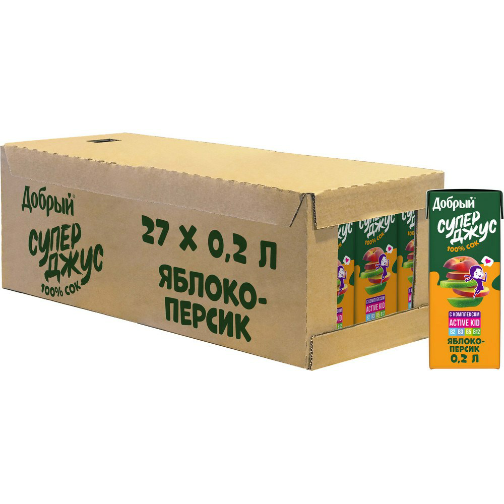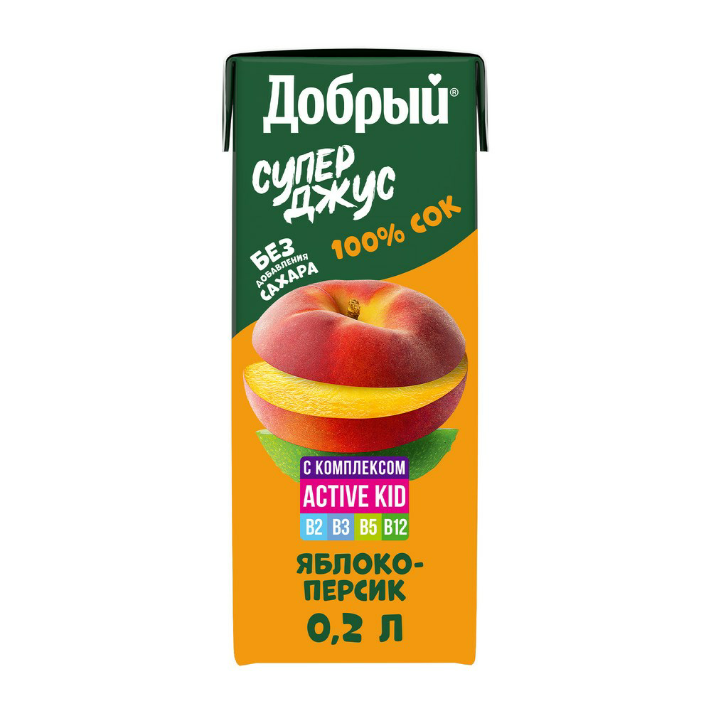 Нектар Добрый персиково-яблочный 0,2 л. С мякотью. Гомогенизированный. Для питания детей с 3-х лет.