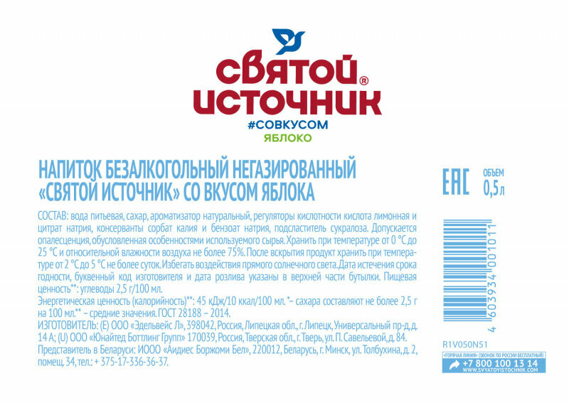 | Состав | Вода питьевая, сахар, ароматизатор натуральный, регуляторы кислотности кислота лимонная и цитрат натрия, консерванты сорбат калия и бензоат натрия, подсластитель сукралоза. |