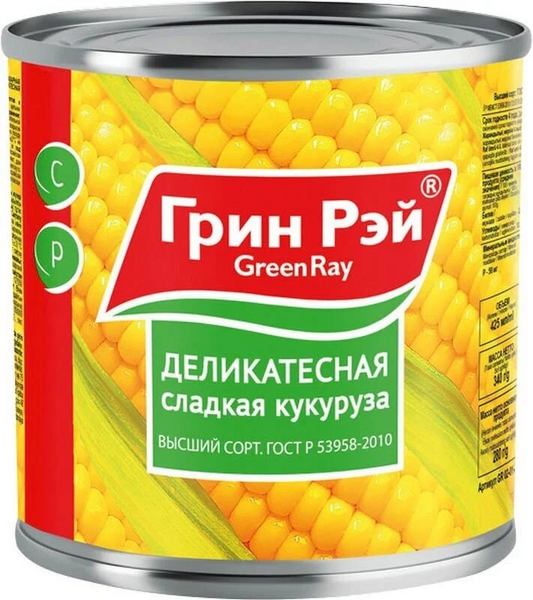 Кукуруза Green Ray деликатесная сладкая Кукуруза Green Ray 425 г
