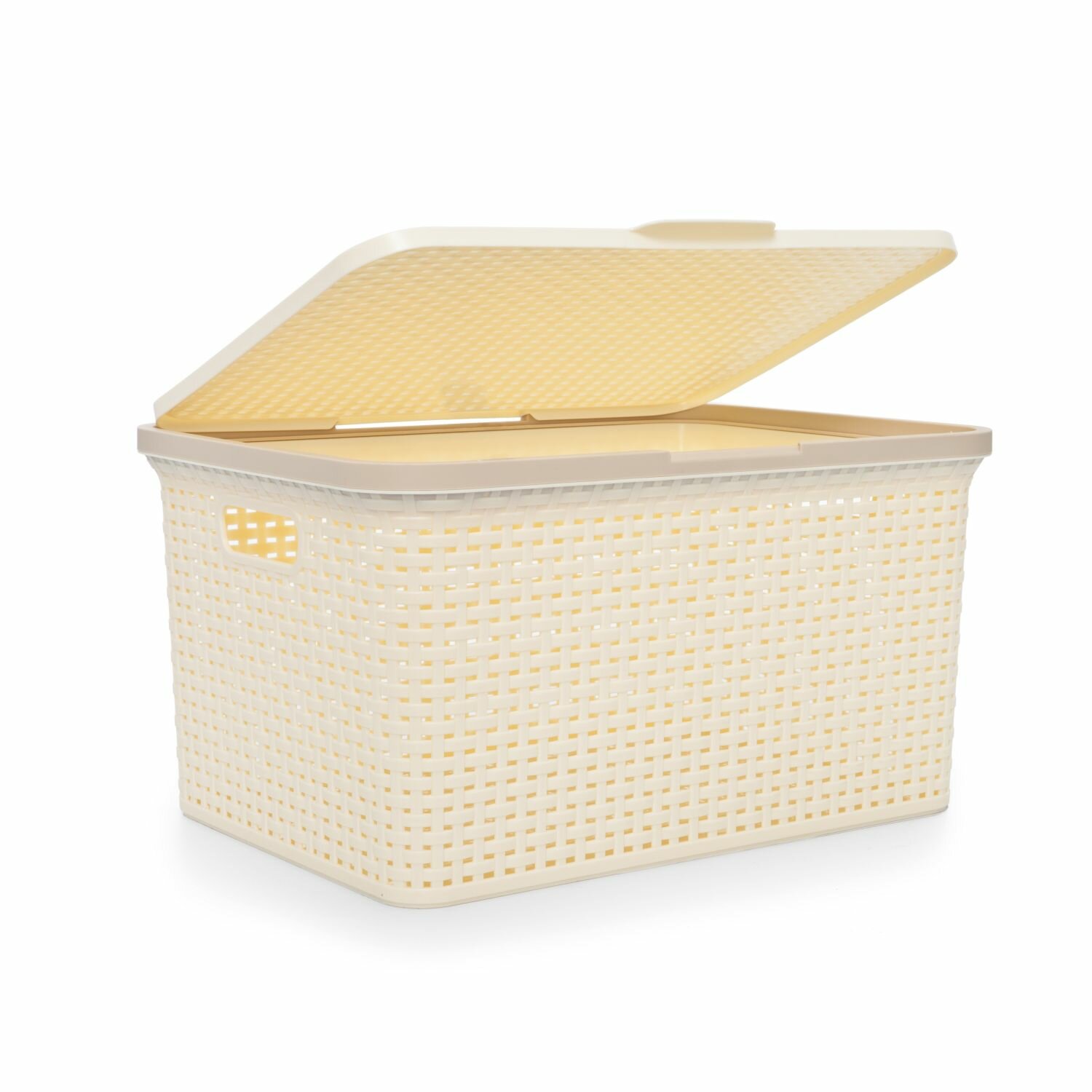 Ящик Полимербыт Артлайн выполнен из высококачественного полипропилена и оформлен под плетение. Изделие предназначено для хранения различных бытовых вещей. Ящик оснащен откидной крышкой и ручками по бокам. Ящик Артлайн очень вместителен и поможет вам хранить все необходимое в одном месте. Внимание: товар представлен в цветовом ассортименте без возможности выбора.