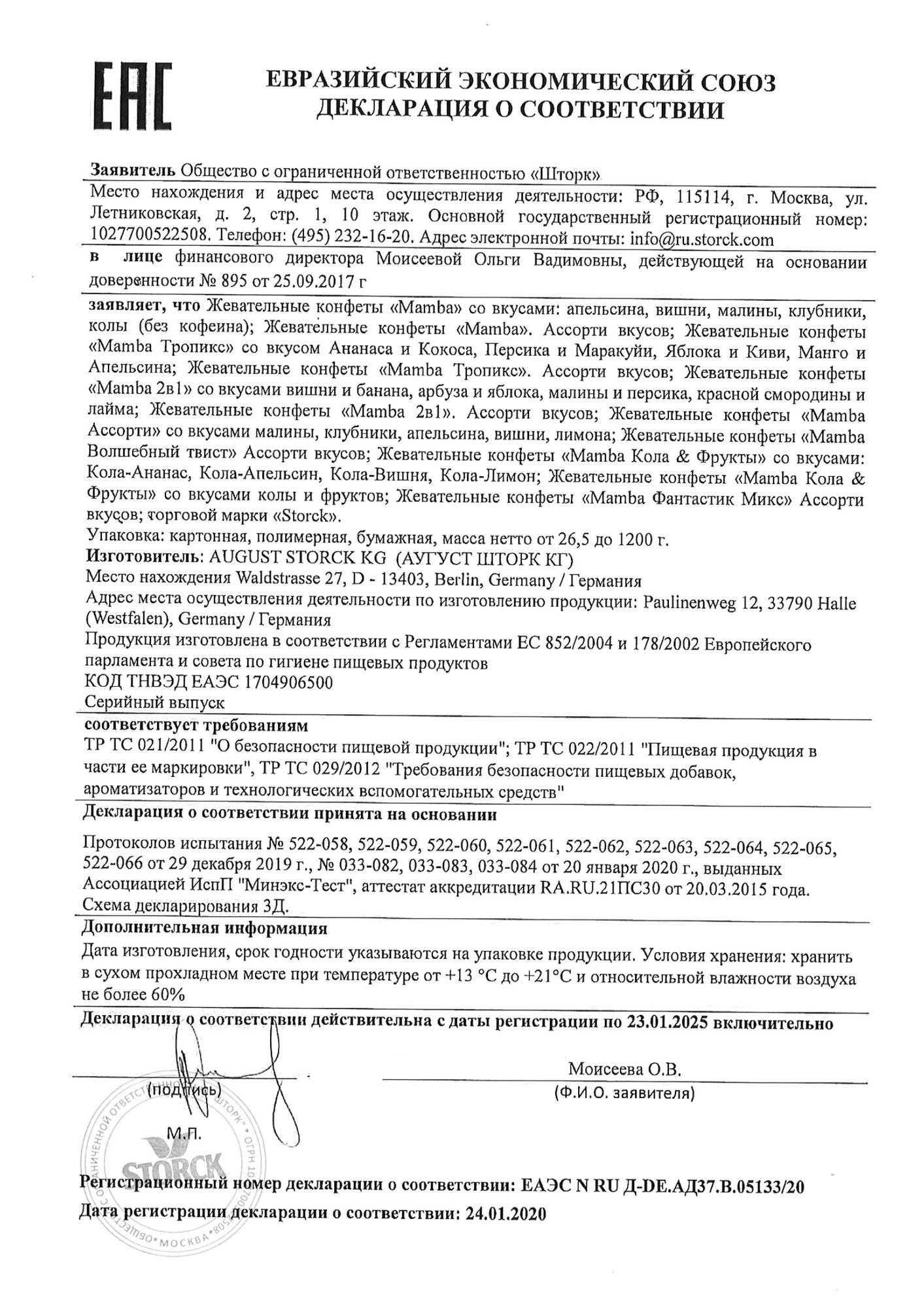 | Условия хранения | хранить в сухом прохладном месте при относительной влажности воздуха не более 60%. |