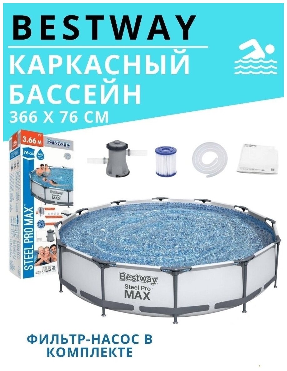 Бассейн каркасный Bestway 366х76см 6473л 56416 (размер: Диаметр 366 см)