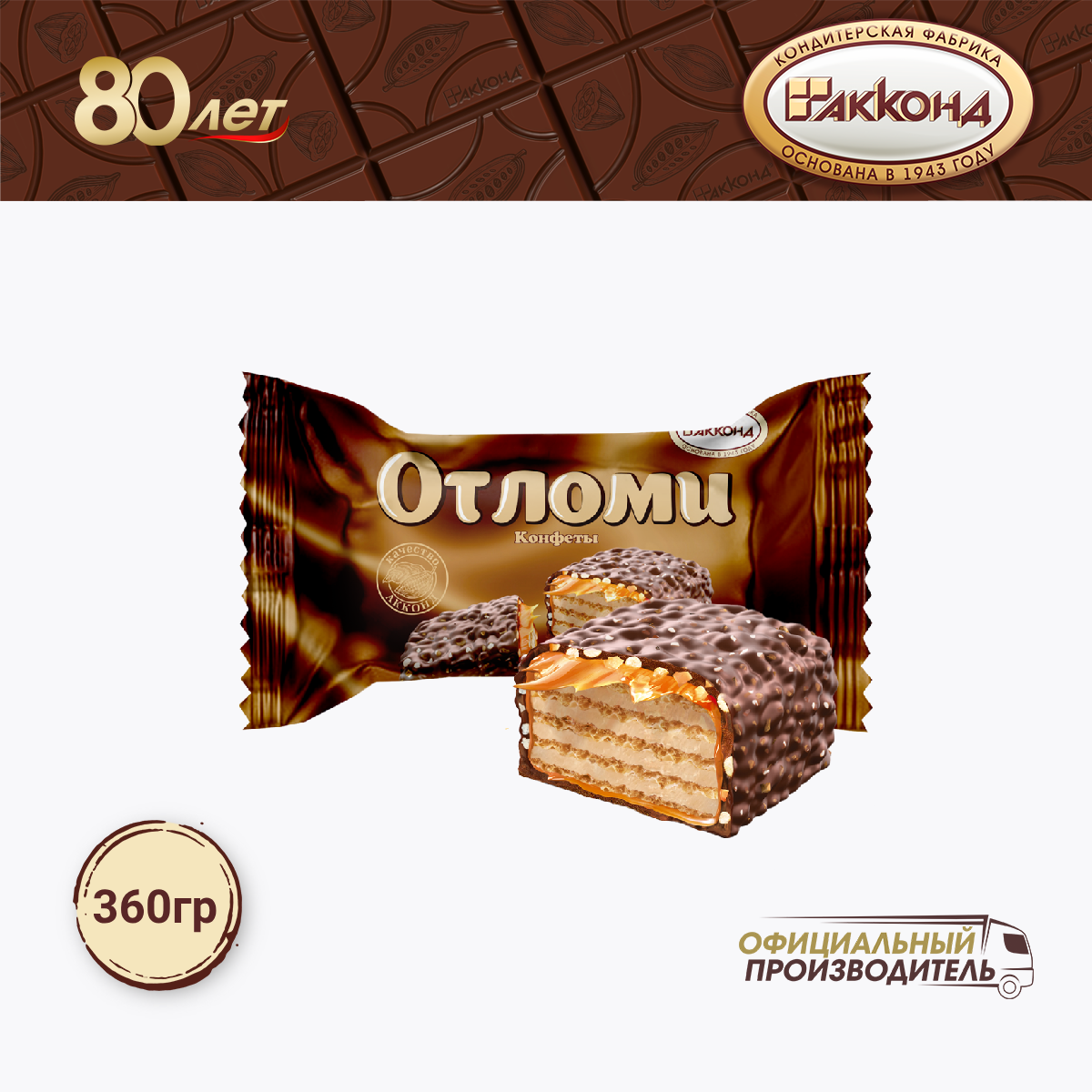 На сегодняшний день товар «Конфеты Акконд Отломи Конфеты Акконд Отломи Хрустящие вафли Мягкая карамель Арахис и воздушный рис 360 г» можно купить с кешбеком в 3 магазинах: Яндекс Еда, Яндекс.Маркет, delikateska