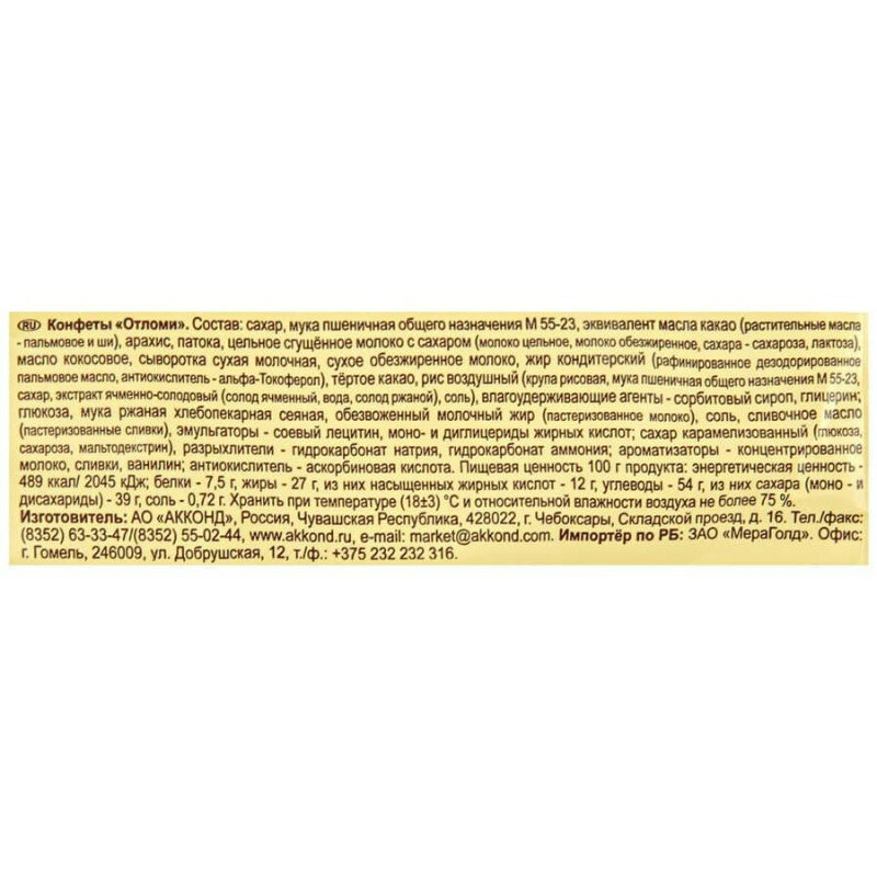 Конфеты Акконд Отломи Конфеты Акконд Отломи Хрустящие вафли Мягкая карамель Арахис и воздушный рис 360 г