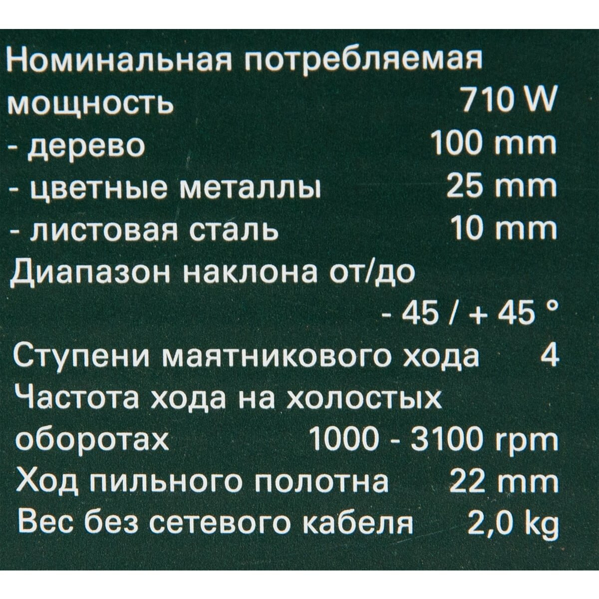 | Частота движения пилки | 1000 - 3100 ходов/мин |