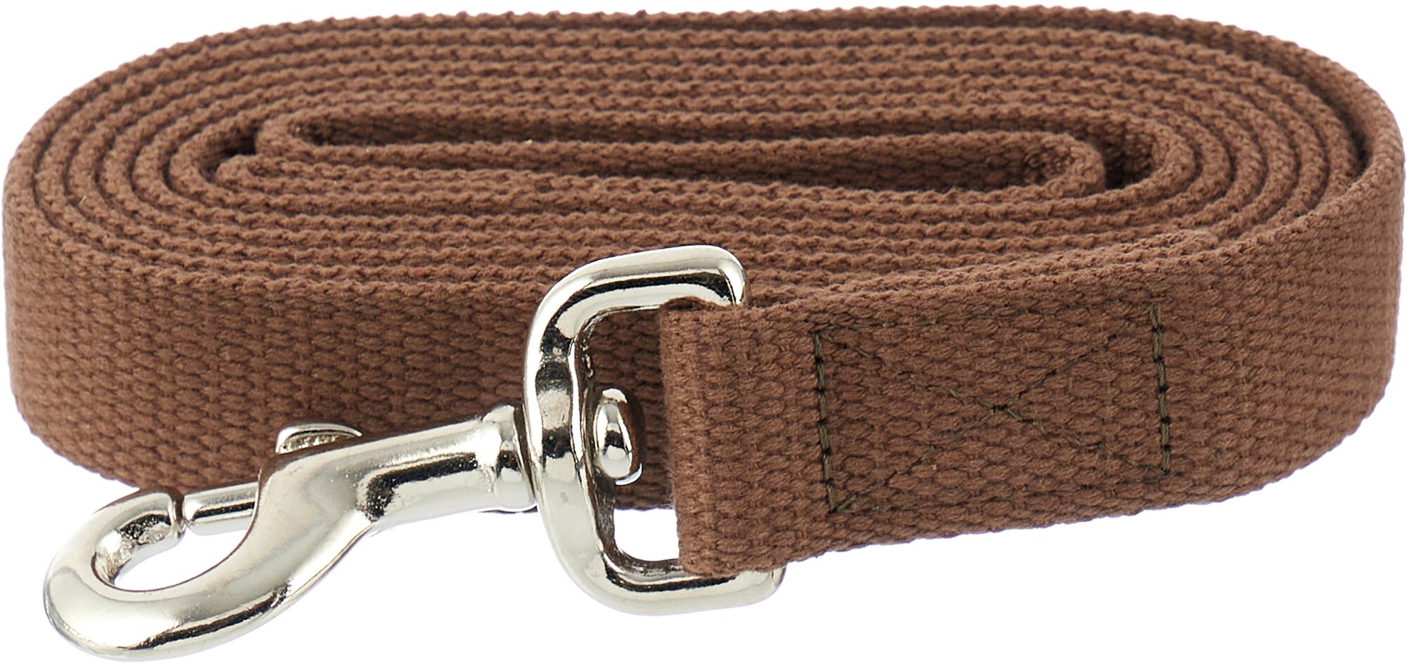 Поводок, изготовленный из брезента, прекрасно подойдет для собак крупных пород. Поводок применяется для прогулок и дрессировки собаки. Он отличается большой длиной, высокой прочностью и долговечностью. Поводок снабжен надежным карабином, изготовленным из высококачественной стали. Специальный переходник позволяет карабину крутиться вокруг своей оси, предотвращая запутывание поводка. На поводке имеется петля, которая одевается на руку для более удобного использования.