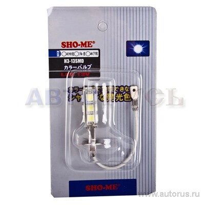 Лампа автомобильная светодиодная Sho-Me H3-13SMD типоразмер H3, напряжение 12В, мощность 3.5Вт, в упаковке 2шт.