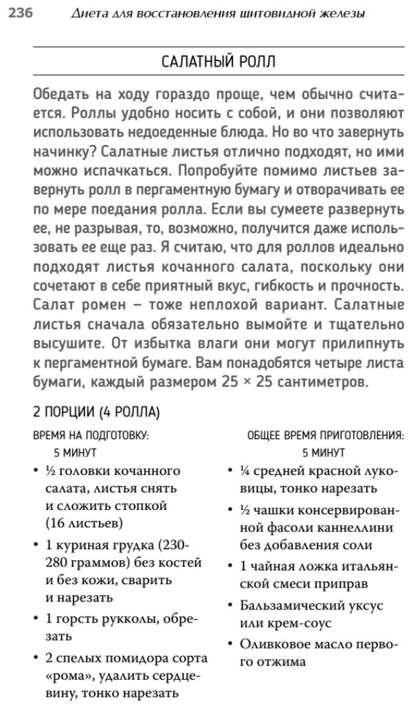 Отличная книга не только для людей с заболеваниями щитовидной железы, но и для тех, кто придерживаться диетического питания. С моим состоянием здоровья, образом жизни диета просто необходима. Перечитала кучу книг разных авторов, но в этой нашла для себя то, что нужно: разнообразные рецепты (даже если у вас какой-то своеобразный тип питания, тут вы точно найдёте несколько интересных рецептов для себя). Понравилось, как автор простым языком излагает о работе щитовидной железы и в целом книга написана легко, будет понятна широкому кругу читателей
