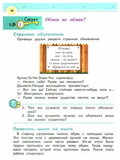 Калашникова Н. Г, Белорукова Е. М, Жаркова Е. Н. Секреты финансовой грамоты 2 классЦель пособия - познакомить детей с историей денег, сформировать элементарные финансовые умения, дать начальные представления о рекламе товаров и услуг. Дети узнают, для чего нужны деньги, что такое бесполезные и полезные покупки, как выбрать товар или услугу, как совершать умные покупки. Пособие состоит из серии небольших рассказов, каждый из которых содержит финансовый аспект. Вопросы для обсуждения и система заданий помогут младшим школьникам усвоить материал. В пособии использованы сквозные персонажи, которые попадают в различные ситуации, встречающиеся в жизни детей. Содержание пособия включает материал в виде схем, графиков, таблиц, диаграмм и заданий для развития проектных и исследовательских умений.