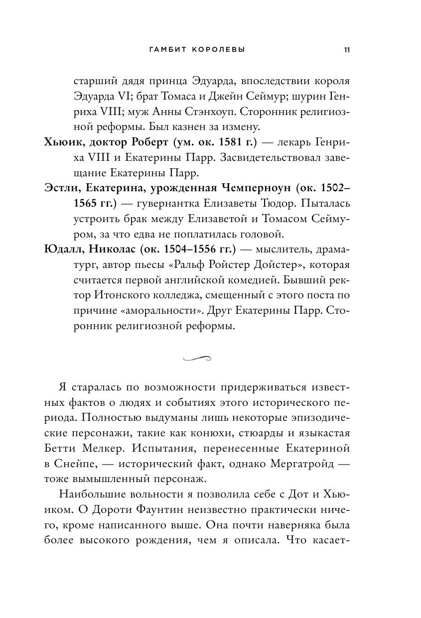 Книгу "Гамбит королевы" я прочитала буквально за неделю! Повествование держало в напряжении до последнего, хотя и финал был понятен. В детстве и юности я много читала о Генри8 и его женах, но никогда не задумывалась о Екатерине Парр. Её образ стал для меня открытием и после прочтения книги я сама углубилась в историю. Но не стоит думать, что "Гамбит Королевы" всего лишь историческое чтиво. Прежде всего - это художественная литература, в свете которой история заиграла новыми яркими красками!