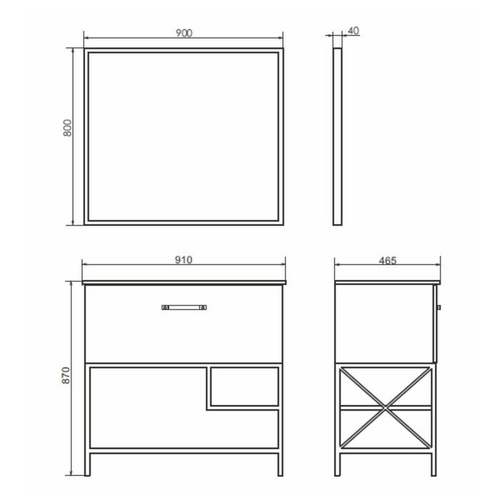 Зеркало. Цвет-серый графит. Материал каркаса: сталь. Габариты (ШхВхГ): 900*800*40 мм. Зеркальное высококачественное полотно с амальгамой на основе серебра. Зеркало на черном и сером металлическом каркасе