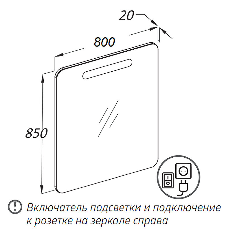 | Оснащение зеркала | С подсветкой, с розеткой, с выключателем |