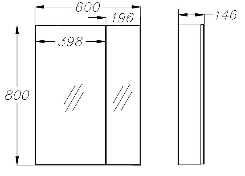 - Габариты (ШxВхГ): 600х800х146 мм.