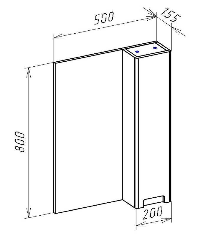 - Размер (ШхВхГ): 500х800х155 см.