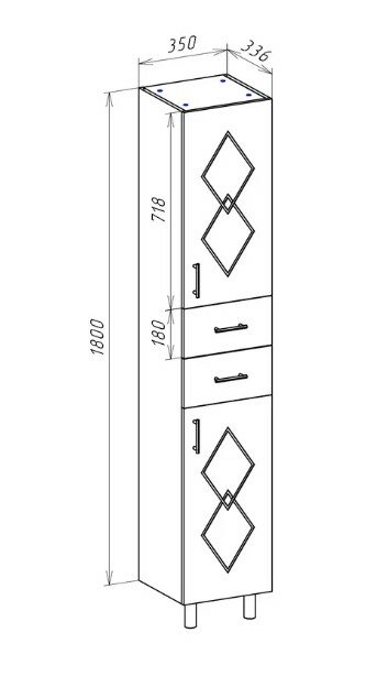 - Размеры (ШхВхГ): 350х1900х336 мм.