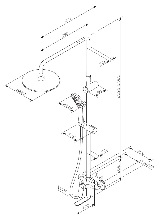 Тотальный дизайн в действии: все детали душевой системы – от пропорций ручного и верхнего душей до рисунка расположения форсунок на лейках – подчинены единой дизайн-концепции коллекции Sunny. Смесители коллекции Sunny отмечены престижной международной наградой Good Design. Стильный дизайн смесителя для ванны/душа с функциональным поворотным изливом легко впишется в современную ванную комнату. Диаметр душевых леек (верхний душ 220 мм и ручной душ 110 мм) позволит ощутить преимущества тропического душа даже в стандартной ванной, тогда как увеличенная длина шланга 1750 мм обеспечит свободу движений во время принятиядуша.Продуманные детали для удобства использования: телескопическая поворотная штанга регулируется по высоте в диапазоне от 1030 до 1460 мм, обеспечивая комфорт для людей любого роста. Черный цвет как нельзя лучше подчеркивает изящество силуэтов смесителя и душевой системы, добавляя роскошь интерьеру ванной комнаты.