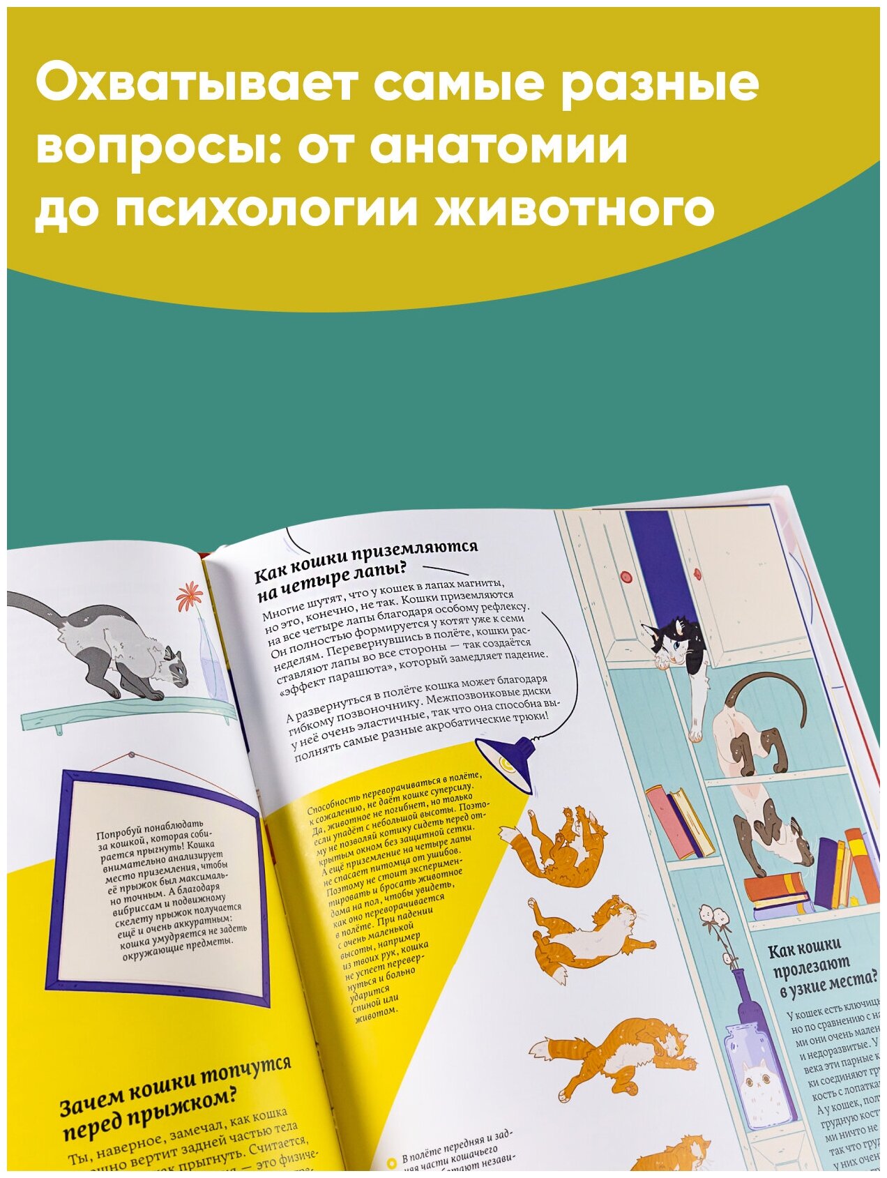 Просто чудесная штука для всех любителей кошек, и мастхев для каждого ребенка, с которым живет такой пушистый друг. В книге прекрасный язык, много интересной и полезной информации, и, конечно, просто великолепные иллюстрации. Держа её в руках, сразу понимаешь, что и автор, и оформитель — оба имели прямое и близкое знакомство с мурчалами :)