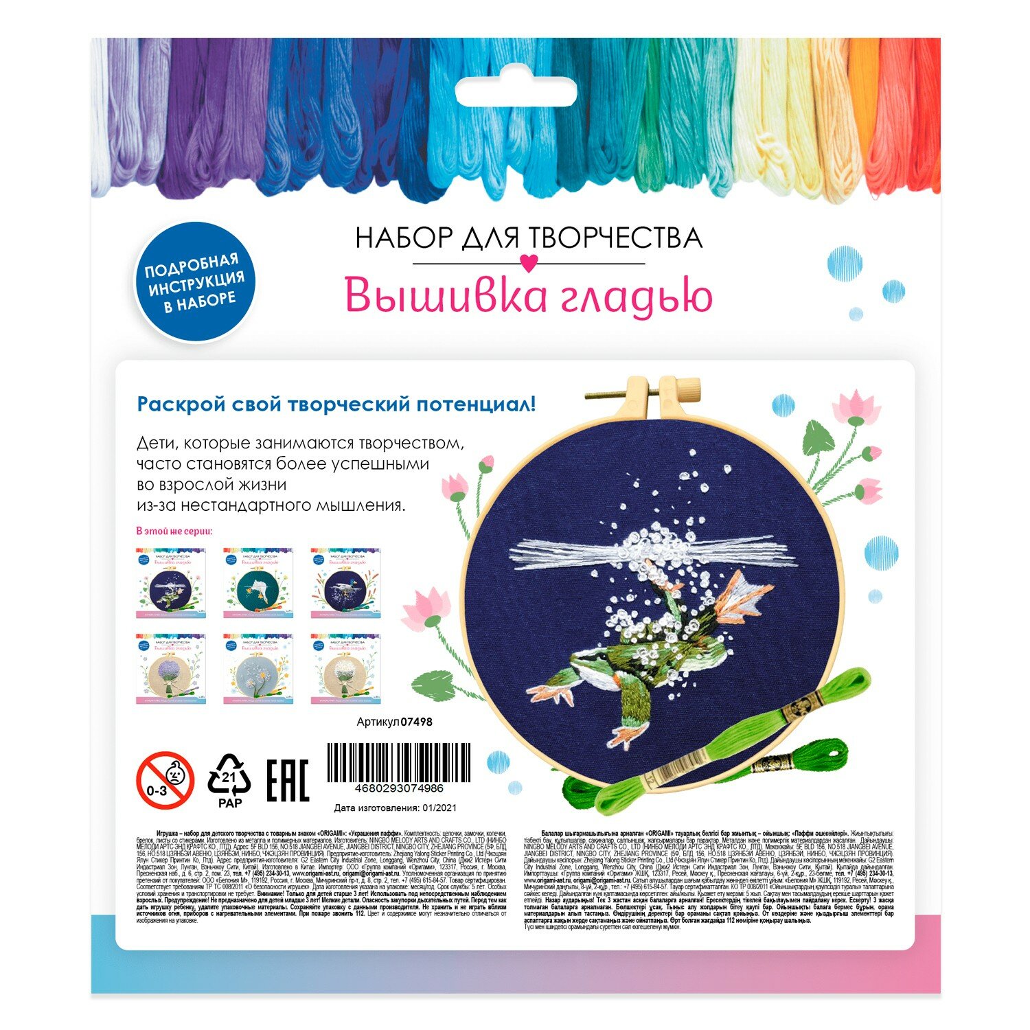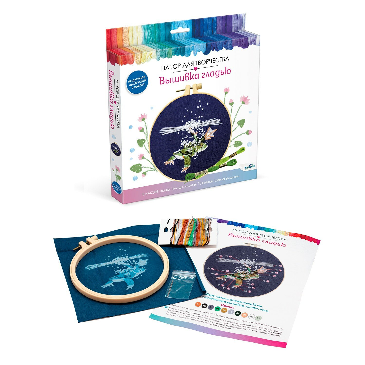 Набор для творчества. Вышивка гладью Лягушка ОРИГАМИ