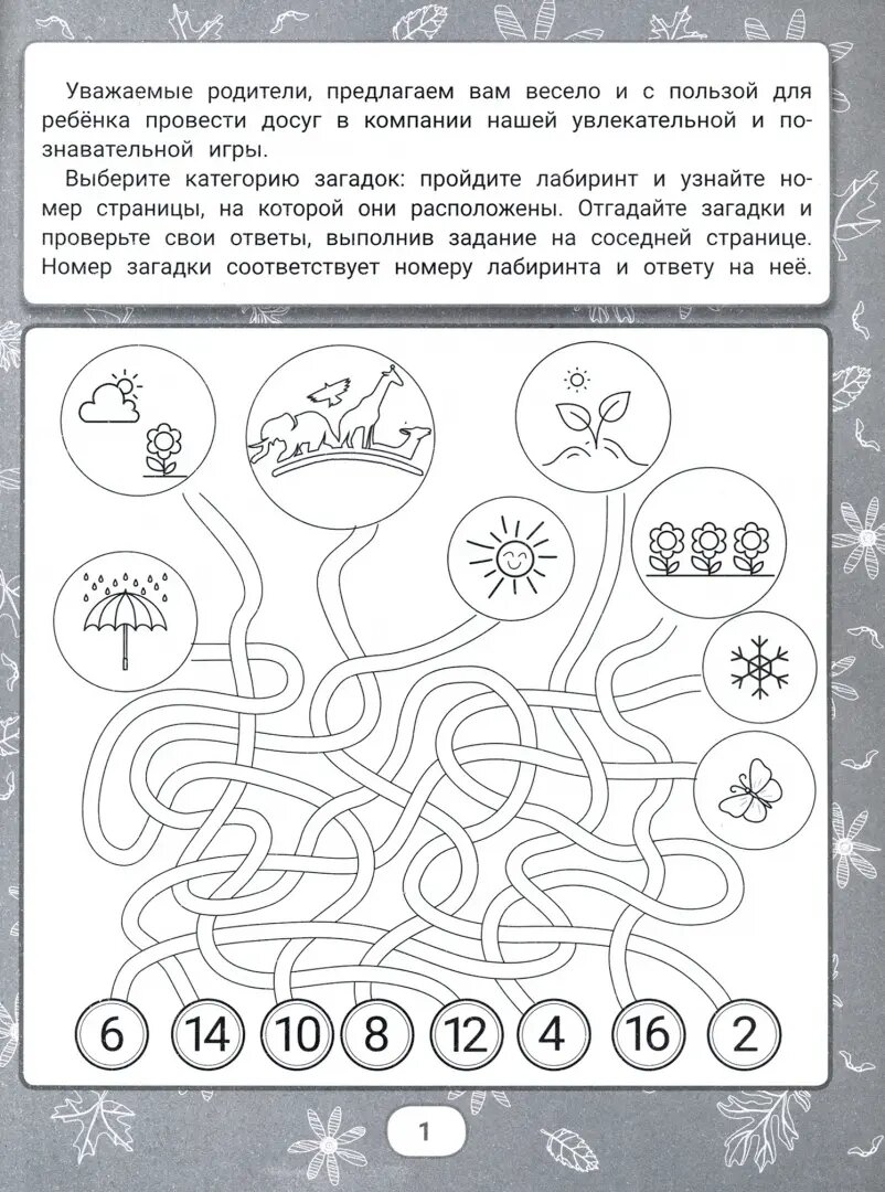 Эта книга-игра позволит вам увлекательно и познавательно провести досуг с ребёнком. Разгадывая загадки, вам всё время придётся пробираться сквозь лабиринты в поисках ответов. С помощью этой книги ребенок расширит словарный запас, закрепит умение выделять существенные признаки предметов, разовьёт сообразительность, любознательность и мышление. Работа с лабиринтами способствует развитию зрительно-пространственного восприятия, глазомера, произвольного внимания и усидчивости. Всё это очень полезно и необходимо для подготовки ребёнка к школе.