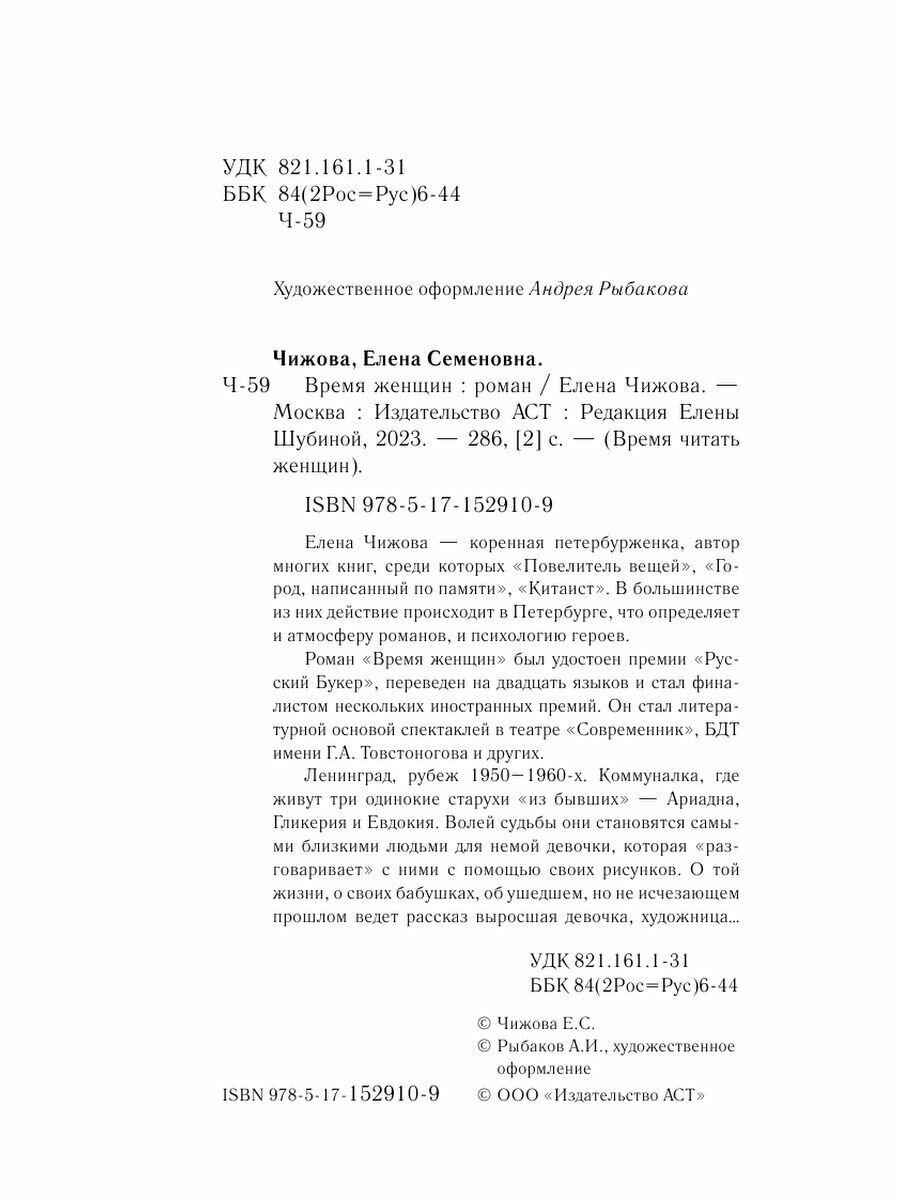 Книга: Время женщин (Елена Чижова); АСТ, Редакция Елены Шубиной, 2022