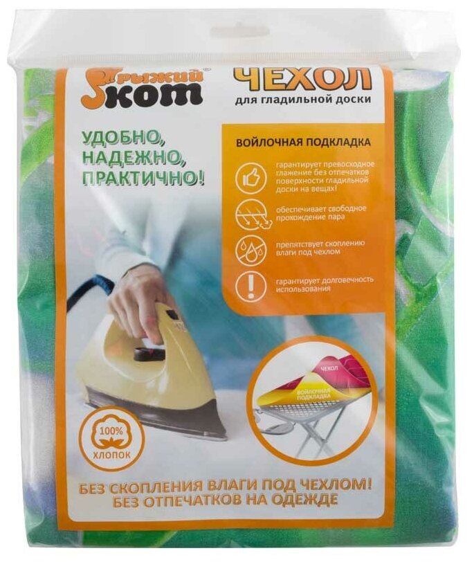 Чехол для гладильной доски Рыжий кот 120x40 см ткань, войлок предназначен для защиты рабочей поверхности доски и одежды.Благодаря хлопковому покрытию не содержит вредных соединений и безопасен для человека.Войлочный слой выравнивает и смягчает рабочую поверхность, что обеспечивает плавное скольжение подошвы утюга.Чехол оснащен шнуром для утяжки, что предотвращает его скольжение.Внимание! Товар поставляется в нескольких цветах. Возможности выбора нет.