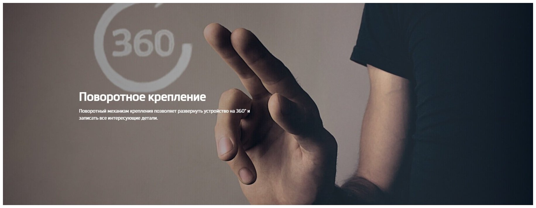 Поворотный механизм крепления позволяет развернуть устройство на 360° и записать все интересующие детали.