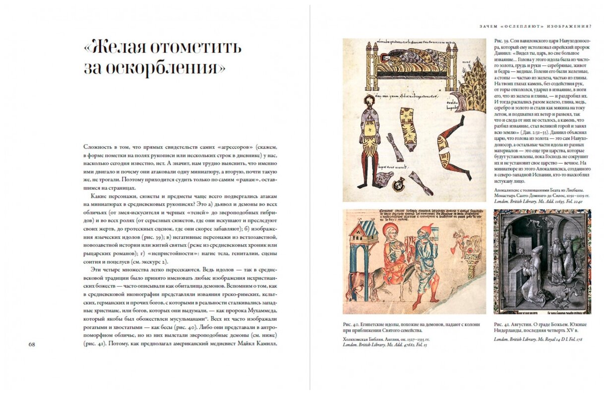 Эта книга посвящена различным мотивам, которые побуждали атаковать визуальные образы в Европе. долгого Средневековья.. От. мести. демонам и грешникам, нарисованным на листах рукописей, до избиения статуй святых, чтобы принудить их к помощи. От иконоборческой войны, которую протестанты-иконоборцы вели против католических. идолов., до моральной цензуры, которая спешила прикрыть или скрыть от взора изображения нагих тел.