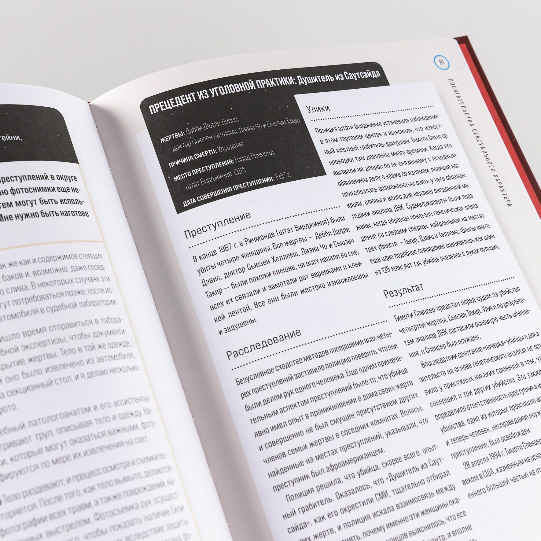 Красочно оформленная книга, все главы снабжены большим количество фотоматериалов на тему следов преступления, улик и прочего. Книга в доступной форме рассказывает о том, что такое криминалистика и как раскрывать преступления. Опытные оперативники не найдут в ней ничего нового, но неофитам будет интересно