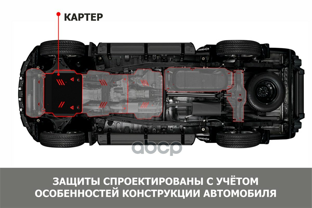 - Защита устанавливается в штатные места кузова автомобиля.