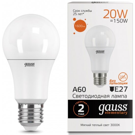 Упаковка ламп светодиодных 10 шт Gauss LED Elementary A60 20W E27 2700K LED_Gauss_E27
