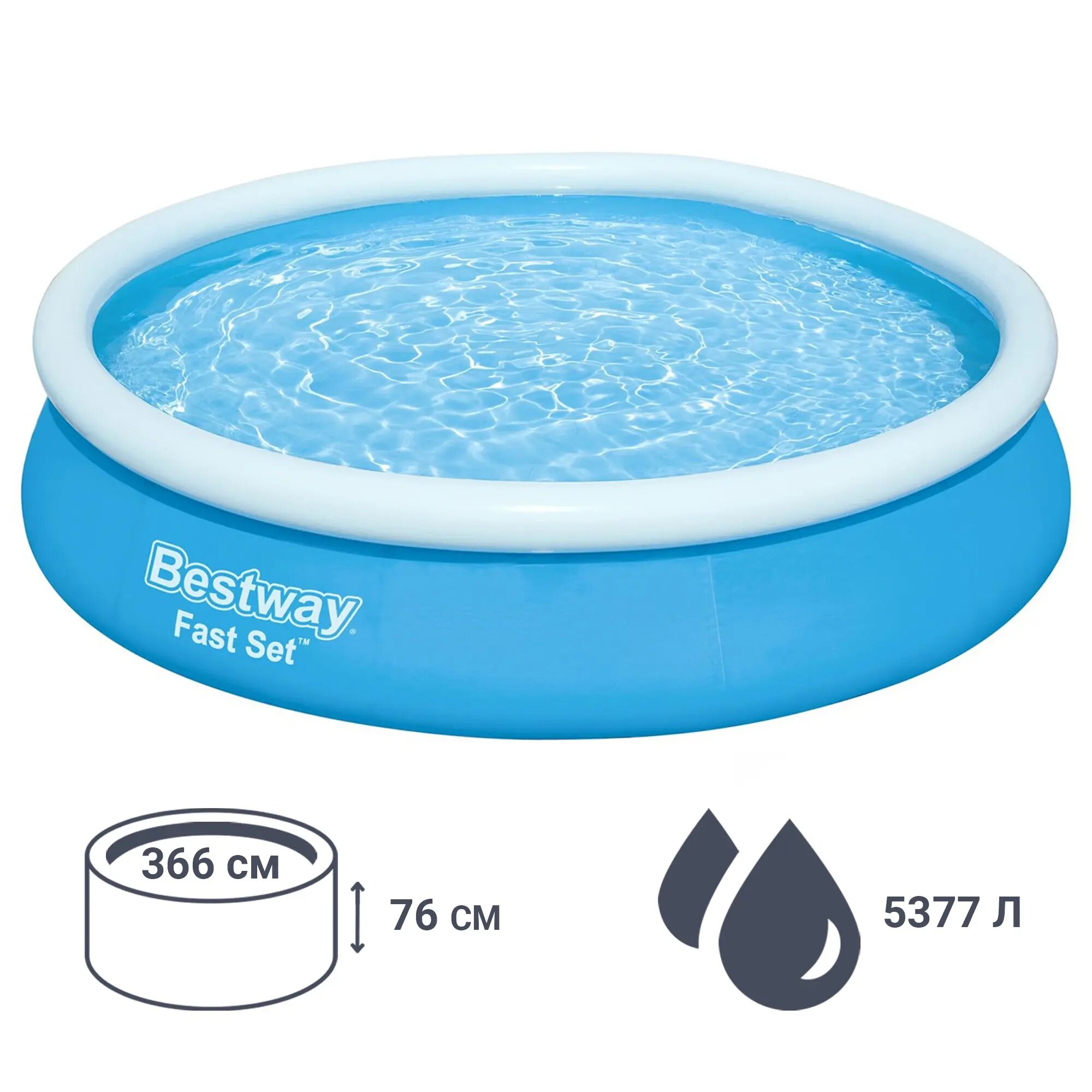 Бассейн с надувным бортом – это развлечение для всей семьи. С этим бассейном вы сможете насладиться бодрящим досугом и разнообразить привычные будни.Надувной бассейн Bestway отличается простотой и легкостью. Стенки бассейна, выполнены из армированного ПВХ, внешний слой – полиэстер для особой прочности. Поддержка бортов осуществляется при помощи надувного кольца, которое поднимается по мере наполнения бассейна и расправляет его стенки.Для установки бассейна нужна плоская, горизонтальная площадка. Время сборки и подключения бассейна не более 10-15 минут. На холодное время года не рекомендуем оставлять бассейн на открытом воздухе.Удобный сливной клапан позволяет присоединить садовый шланг, что дает возможность слить воду в любое место.В комплекте имеется фильтр-насос для наполнения и рециркуляции воды в бассейне.Размер: 366х76см. Объем: 5377л. Насос-фильтр мощностью 1249л/ч. Заплатка для ремонта. Вес: 15,2кг.Выберите Бассейн надувной с бортом 366х76см Bestway, по доступным ценам. Оформите заказ, и мы доставим его, как можно скорее.