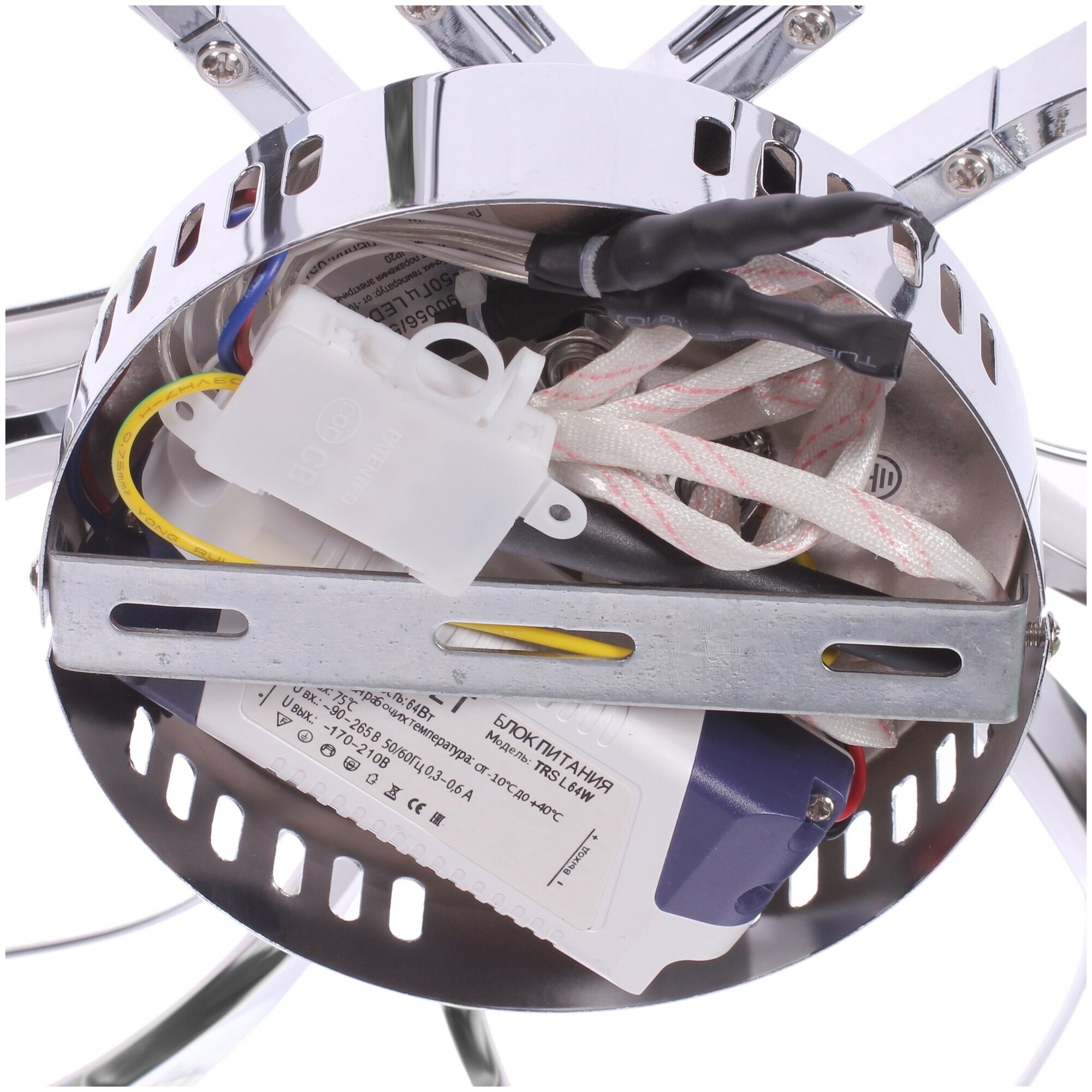 Потолочный светодиодный светильник Eurosvet Fiona создаст качественное освещение на площади 25 кв. м., а эргономичные и легкие формы станут отличным дополнением вашего интерьера. В качестве источника освещения используются встроенные LED с максимальной мощностью 60 Вт, создающие равномерный световой поток 5520 Лм и комфортную цветовую температуру 4200 К. Ориентированный срок службы светодиодов – 50 000 ч. Потолочный светильник сделан из прочного металла с защитным покрытием. Универсальный светильник устанавливается на гипсокартонные конструкции, подвесные и натяжные потолки с помощью крепежной планки. Гарантийный срок от производителя – 60 мес. Серия Fiona – это светильники, которые отлично украсят интерьеры в современном стиле. Светильники из данной серии имеют необычную форму, напоминающую цветок, и украшены металлическими шариками. В серии Fiona также представлен потолочный светильник с 8 плафонами в виде лепестков цветка.