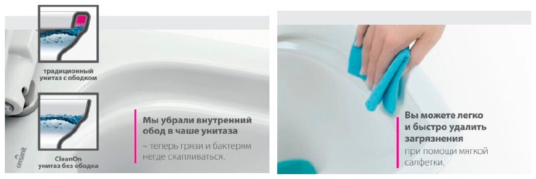 Конструкция CleanOn: безободковая.