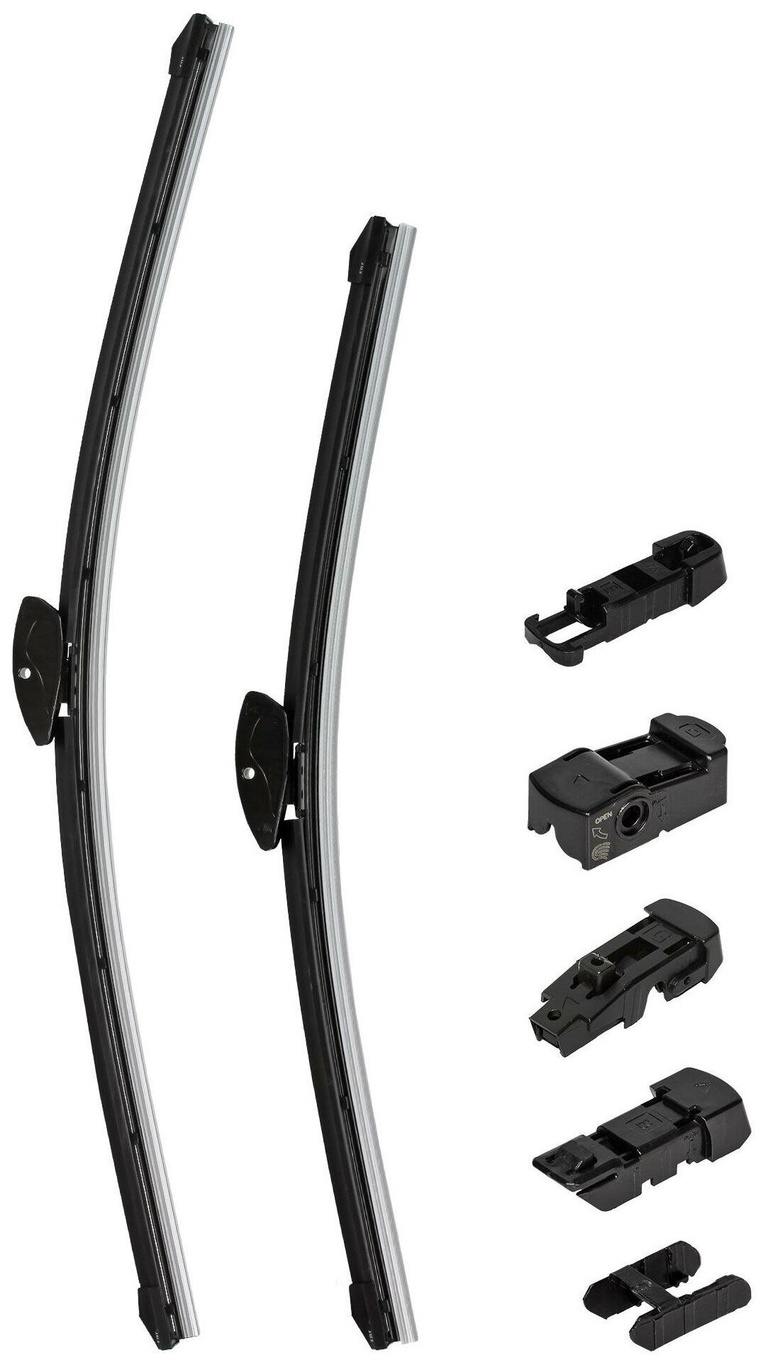 Щетки стеклоочистителя 600/530мм (24"/21") бескаркасныеS60 00/09S80 98/06V70 00/07XC70 02/07XC90 02/16Land Cruiser 07-Panamera 16-Kodiaq 16-.Evoque 11-X6 14-2 шт. 5 типов адптр AIRLINE (AWB-BK-600-530K) (размер: 600/530 мм)