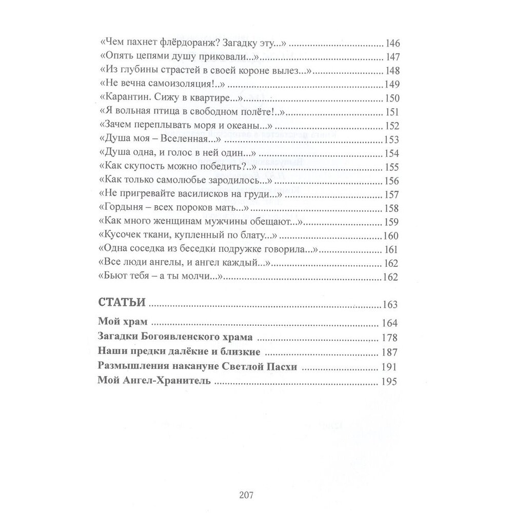 В этом сборнике автор представляет свой первый поэтический опыт. Для неё стихи - это не просто столбцы рифмованных строк, это сама душа, вдруг выплеснувшаяся наружу и оставившая своё отражение на бумаге.