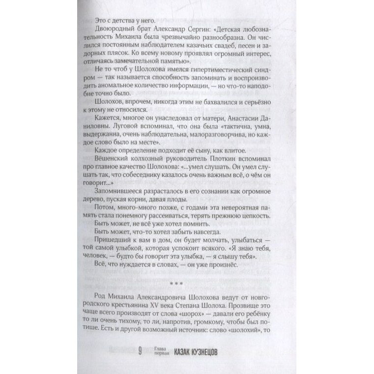 В своей новой полномасштабной биографии Шолохова известный писатель, публицист, политик Захар Прилепин убедительно разоблачает эту и другие легенды, окружающие имя классика. Шаг за шагом проходя вместе с героем его жизненный и творческий путь, Прилепин показывает, что не только книги Шолохова, но и его судьба актуальны для нас сегодня.