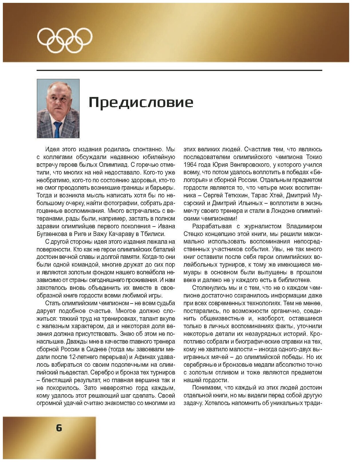 Иллюстрированная книга, рассказывающая обо всех советских и российских волейболистах - чемпионах Олимпийских игр: 1964, 1968, 1980 и 2012 гг. - мужские команды; 1968, 1972, 1980, 1988 гг. - женские команды.
