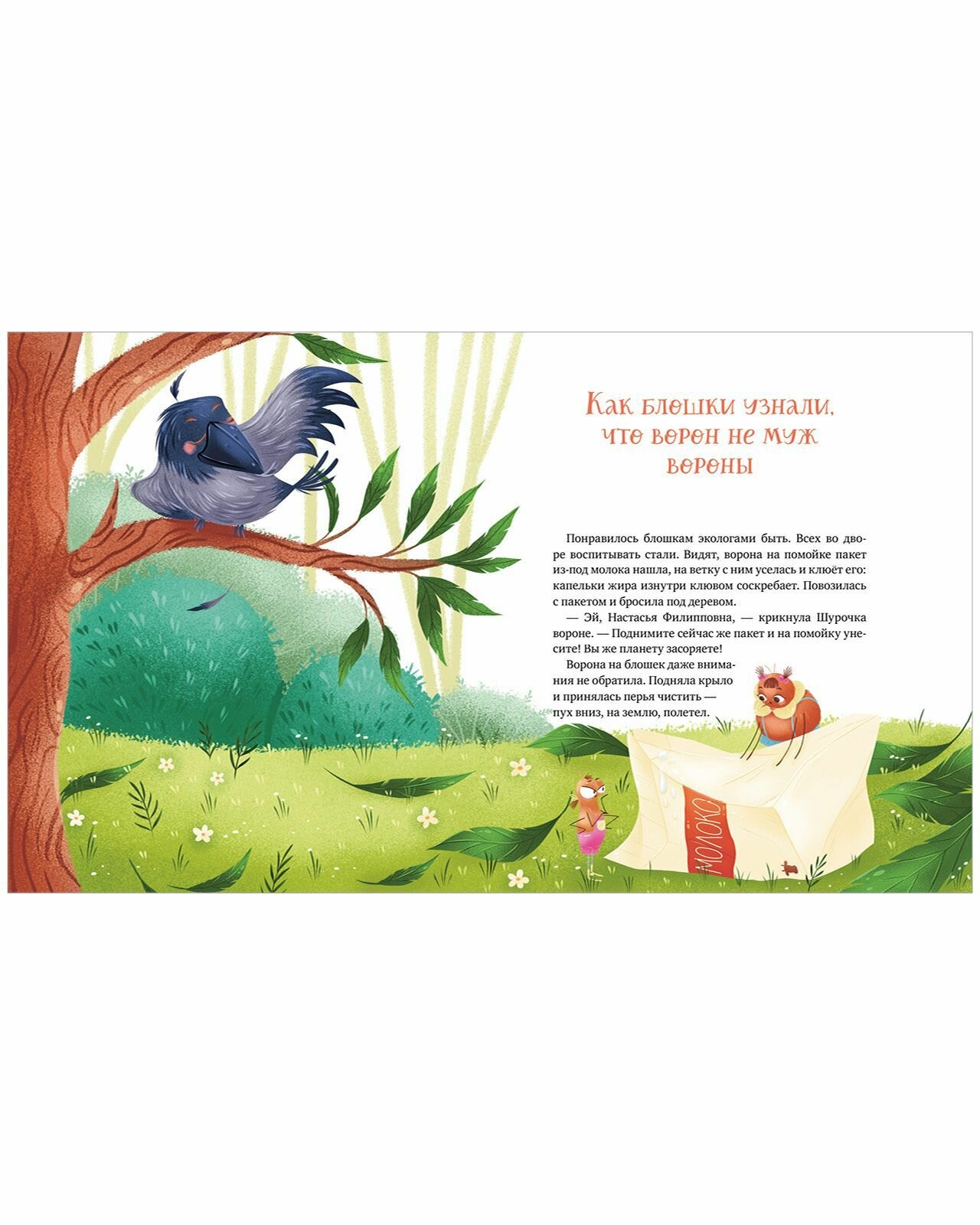 Блошки — это очень «удобные» существа, они взаимодействуют практически со всем животным миром. Вместе с ними ребенок узнает, почему ворон совсем не муж вороне, как муравьи весь муравейник кормят, отчего у кузнечика уши на ногах, какие насекомые поют лучше всех и многое-многое другое.