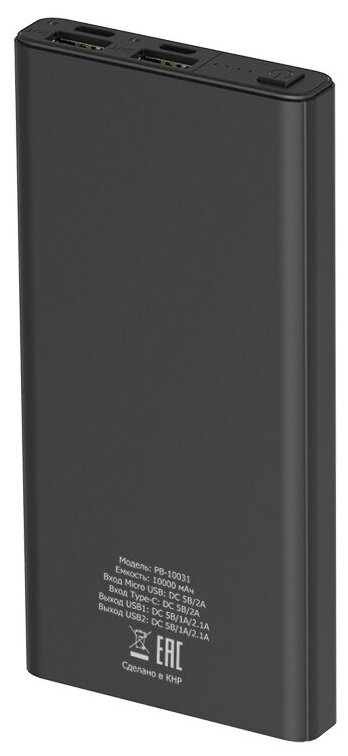 Крепкий, мощный и по-настоящему удобный внешний аккумулятор на 10 000 мАч. Harper PB-10031 имеет не только два выходных разъёма, к которым можно подключить одновременно до двух внешних устройств, но и сразу два разных порта для подзарядки встроенной литий-полимерной батареи. Вам не придётся использовать разные типы кабелей или подключаться через переходники – Harper PB-10031 можно заряжать как от Micro USB, так и от USB Type-C кабеля. Есть LED-индикация оставшегося заряда и защита от перегрузок по току (коротких замыканий). Корпус выполнен из металла.