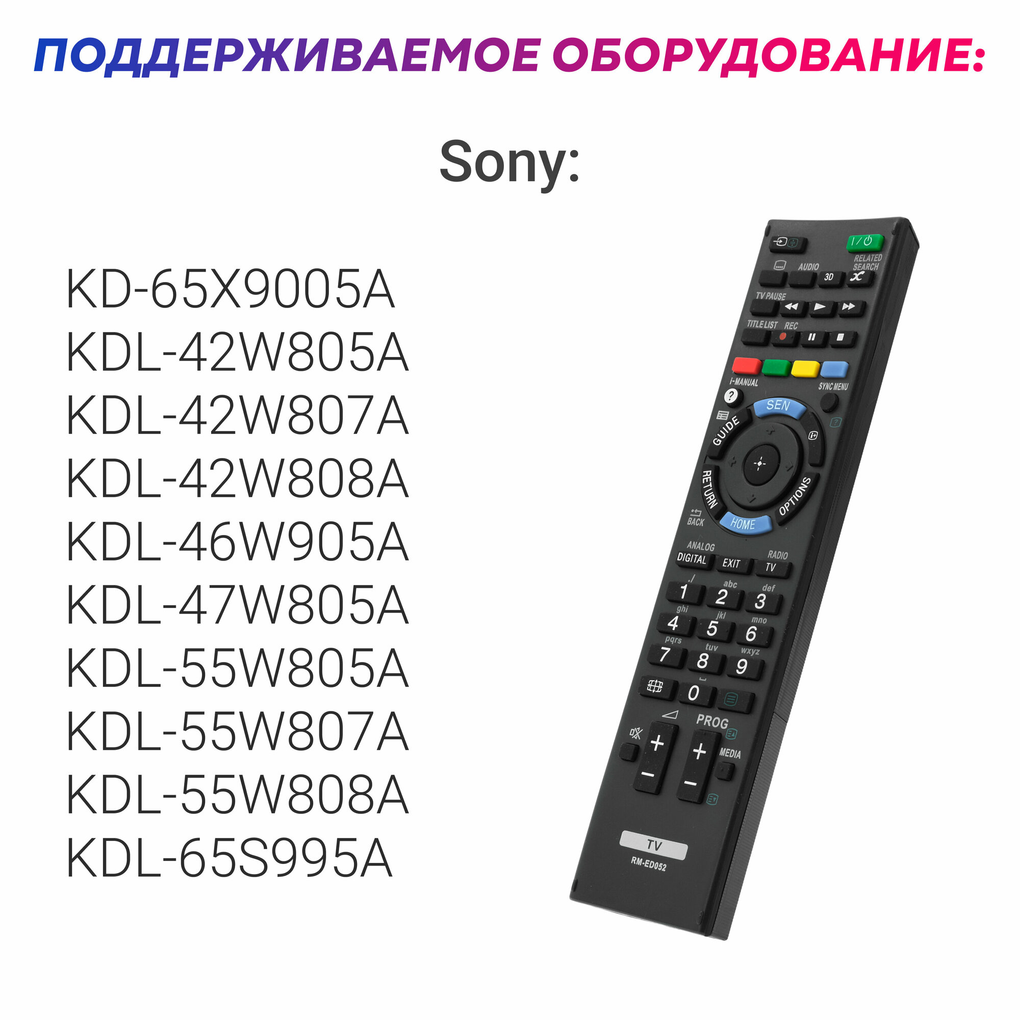 | Совместимость | Sony KD-65X9005A. Sony KDL-42W805A. Sony KDL-42W807A. Sony KDL-42W808A. Sony KDL-46W905A. Sony KDL-47W805A. Sony KDL-55W805A. Sony KDL-55W807A. Sony KDL-55W808A. Sony KDL-65S995A |