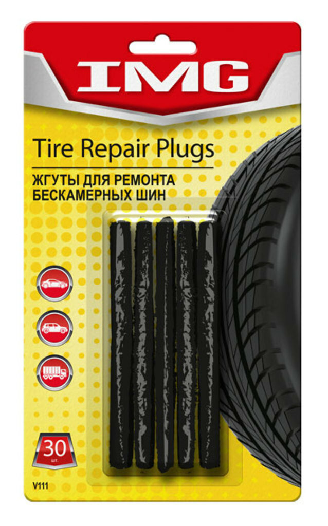 Жгуты для ремонта б/к шин 30 шт. самовулканизирующиеся в блистере (IMG) (V111)