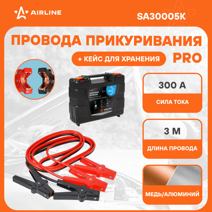 Провода прикуривания 300А PRO (3м 6/12В кейс) AIRLINE SA30005K 300 А PRO 3м, 6/12 В, кейс