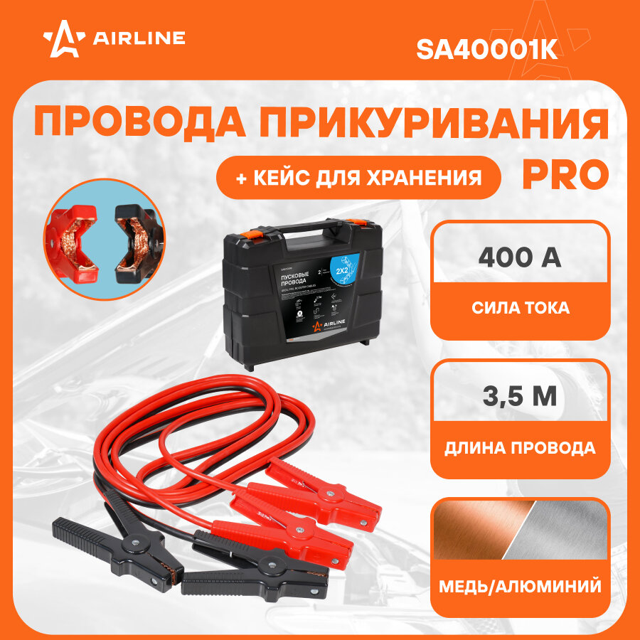 Провода прикуривания 400А PRO (35м 12/24В кейс) AIRLINE SA40001K 400 А PRO 3,5 м, 12/24 В, кейс