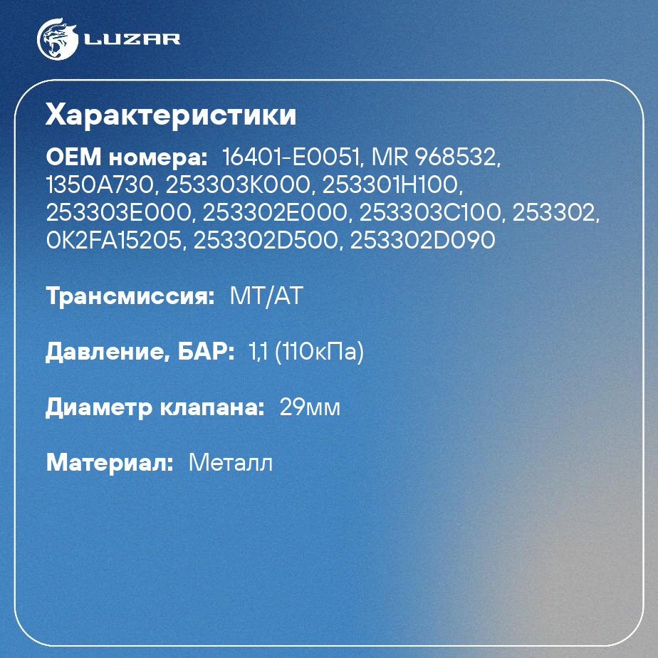 Сервис сравнения цен СкидкаГИД предлагает сравнить цены на товар «Крышка (пробка) радиатора для автомобилей Toyota/Mitsubishi/Honda/Mazda/Nissan/Subaru/Suzuki/Hyundai/Kia 1.1 bar (большой клапан) LUZAR (LL 1905)»