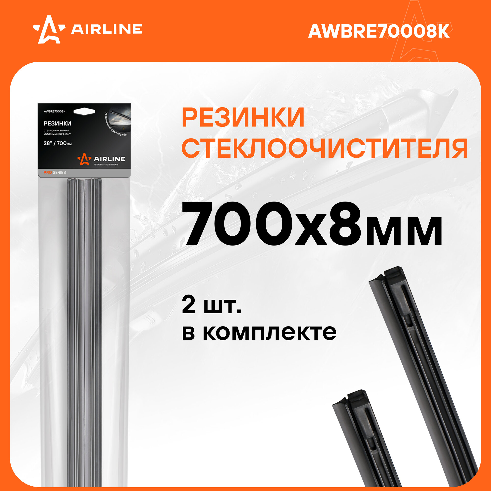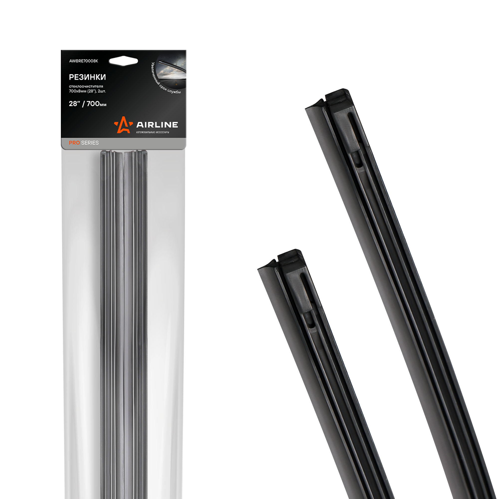 Резинки стеклоочистителя PRO 700х8мм (28") 2 шт. в пакете с навершием AIRLINE (AWBRE70008K) (размер: 28 (700х8мм))