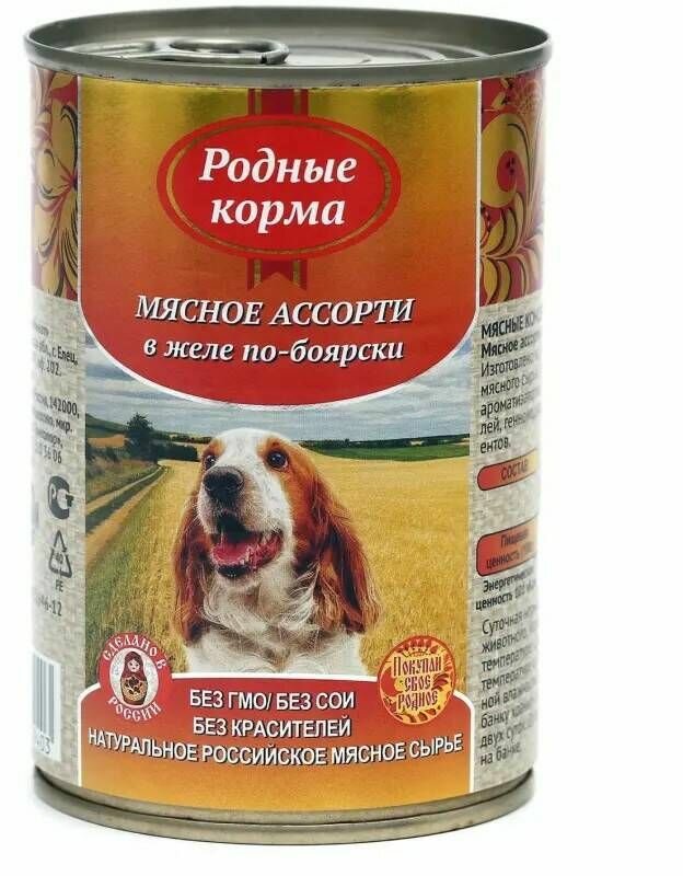 Влажный корм для собак Родные Корма Мясное ассорти в желе по-боярски 097 кг мясо, 970 г
