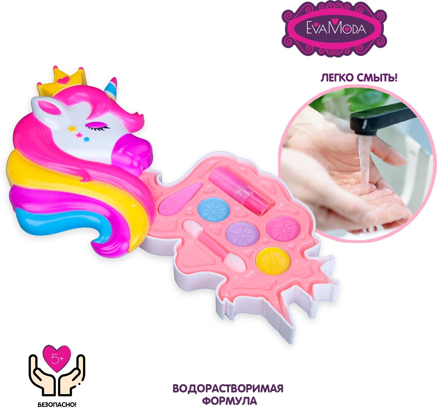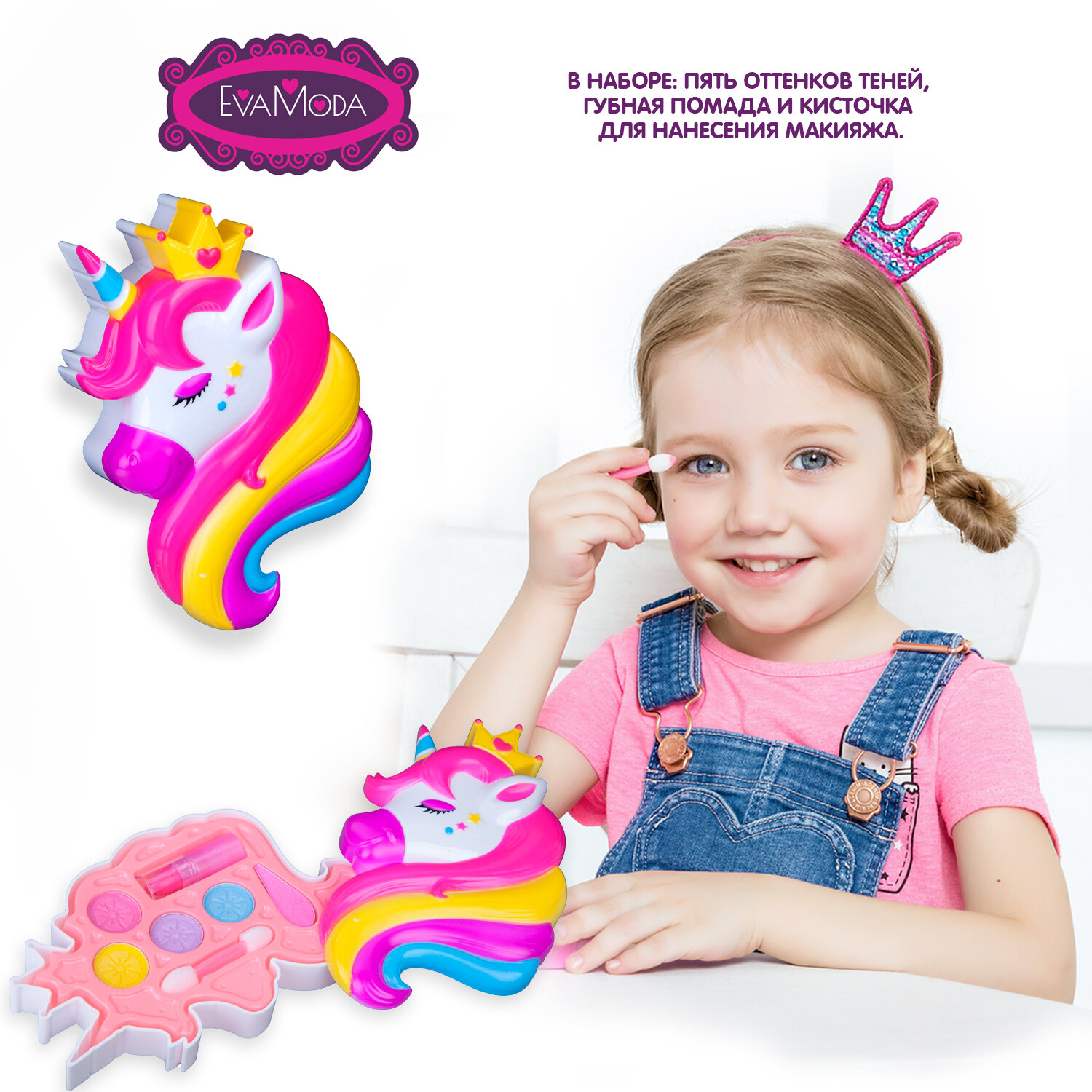 Единороги и волшебство существуют! Доказательство этому - чудесный набор декоративной косметики от Evamoda. Подарите маленькой моднице способность использовать магию цвета в создании прекрасных образов. Ведь интерес к косметике у детей вполне естественен, для них это способ экспериментировать со своей индивидуальностью.