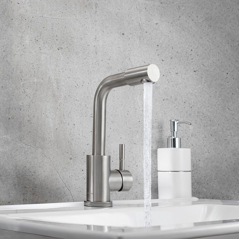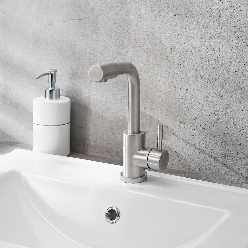 Надежный и стильный смеситель украсит ваше пространство и приятно удивит своей функциональностью благодаря поворотному изливу и вращающему наконечнику с аэратором.При производстве смесителей ТМ РМС используются только высококачественные материалы. Смесители серии SUS125 выполнены из нержавеющей стали, что является гарантией качества и долговечности, устойчивы к царапинам, экологичны и безопасны для вашего здоровья. Поверхность не потеряет со временем свой роскошный вид, а уход за ней сводится к протиранию мягкой салфеткой. Установка смесителя крайне проста. Смесители РМС это сертифицированный продукт с 7-летней гарантией.Картридж: керамический 35мм. Крепление: гайка. В комплекте: гибкая подводка.